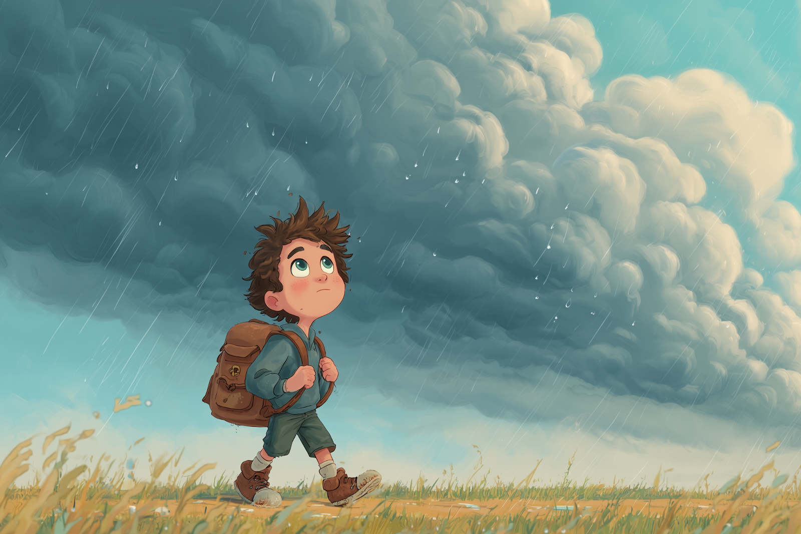 הולך לבית ספר, הגשם התחיל.